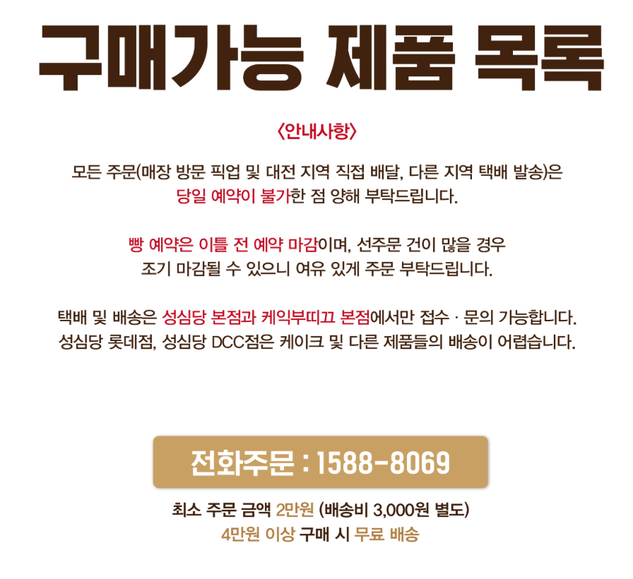 - 전화번호: 1588-8069 (성심당 고객센터 및 택배 주문 전용 번호)