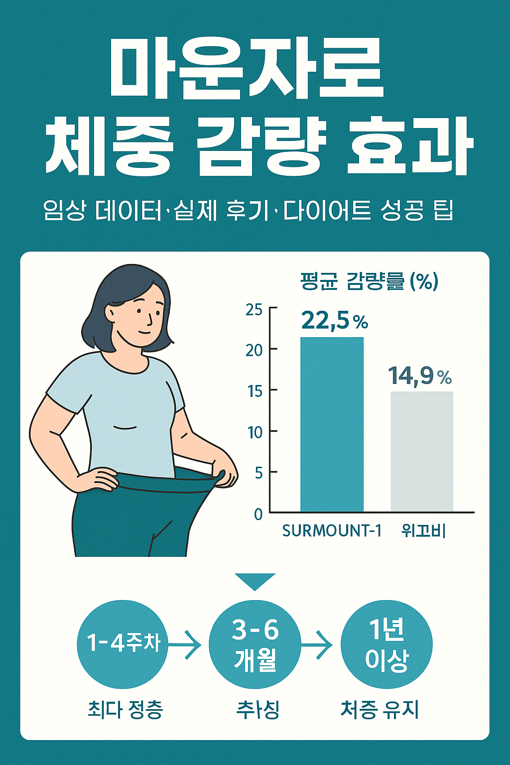 마운자로의 대표 임상 연구 결과를 보면 그 효과를 한눈에 알 수 있습니다.